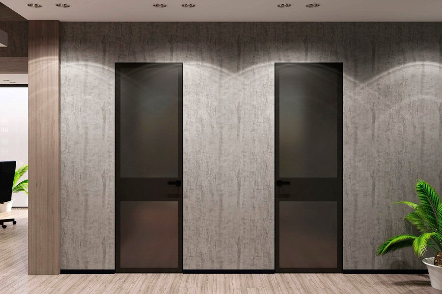 Aceste uși, datorită conceptului, se aliniază ușor designului pentru întreaga casă. Tocul ușilor are profil de aluminiu și se montează încă înainte de finisarea pereților.